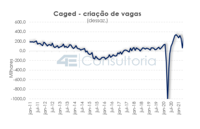 O resultado do Caged de maio acusou a criação líquida de 280,6 mil vagas (292,814 mil vagas na série dessazonalizada).
